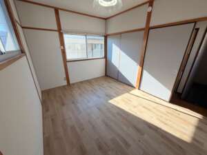 居室のフローリング張替えたてで、清潔感のある室内。