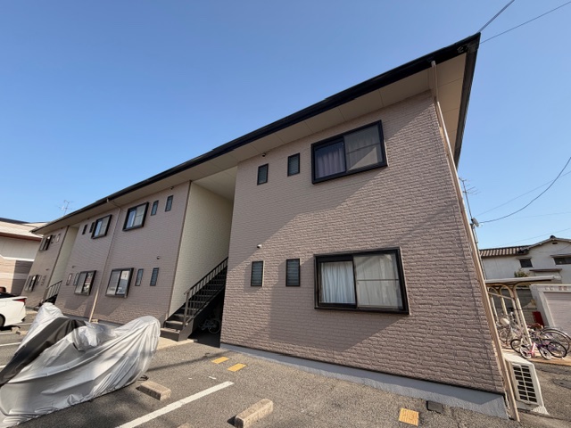 岡山市中区江並エリア、静かな住宅街にある鉄骨造アパート。
